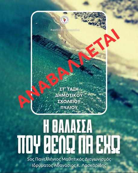 Η σημερινή μας δράση με το Δημοτικό Σχολείο Πυλίου Κω για την «θάλασσα που θέλω να έχω» αναβάλλεται λόγω καιρού.