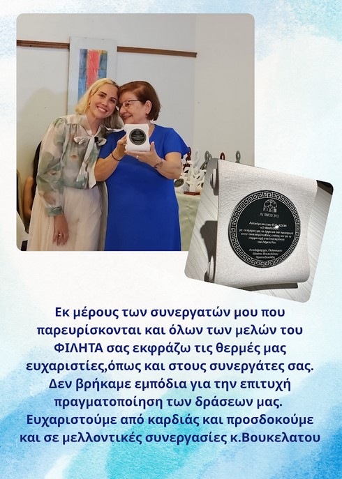 Πολιτισμός - Τέχνες Ευχαριστήριο «Φιλητά»: Στην κ. Ματίνα Βουκελάτου – Χριστοδουλίδη