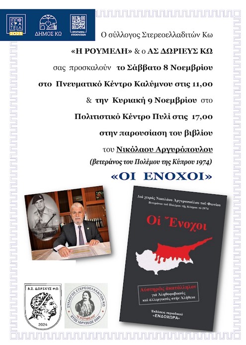 ΠΑΡΟΥΣΙΑΣΗ του βιβλίου «ΟΙ ΕΝΟΧΟΙ» του συγγραφέα ΝΙΚΟΛΑΟΥ ΑΡΓΥΡΟΠΟΥΛΟΥ σε συνεργασία με το ΣΥΛΛΟΓΟ ΣΤΕΡΕΟΕΛΛΑΔΙΤΩΝ ΚΩ «Η ΡΟΥΜΕΛΗ»