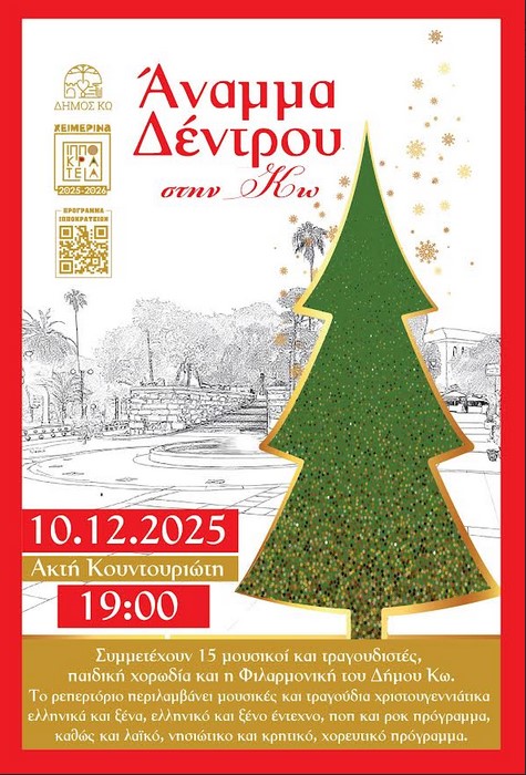 Στο πλαίσιο των Χειμερινών Πολιτιστικών Εκδηλώσεων «Ιπποκράτεια 2025-26» το Τμήμα Πολιτισμού Δήμου Κω σας ενημερώνει: