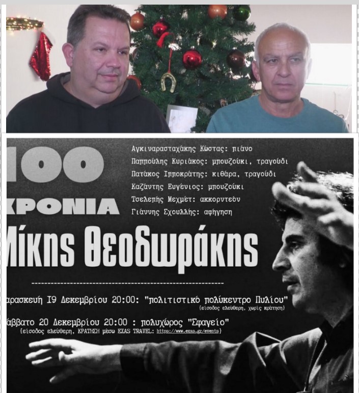 Παρασκευή 19 Δεκεμβρίου 20:00 πολιτιστικό πολύκεντρο Πυλίου, είσοδος ελεύθερη (χωρίς κράτηση).