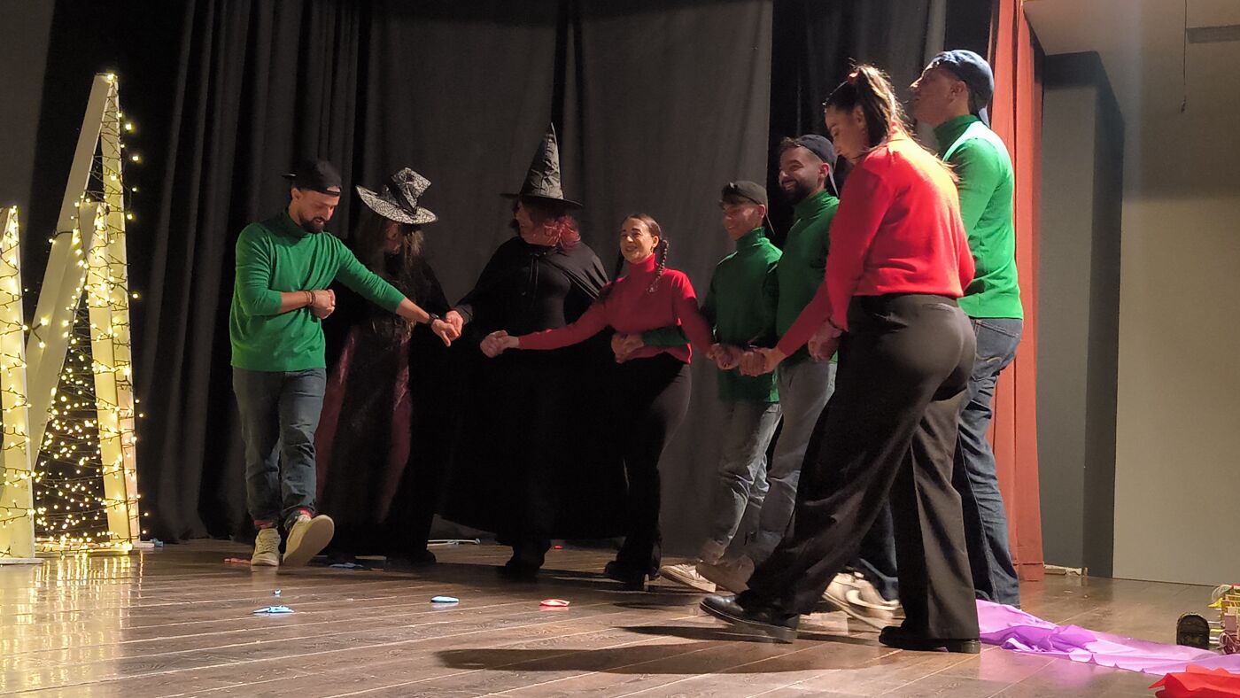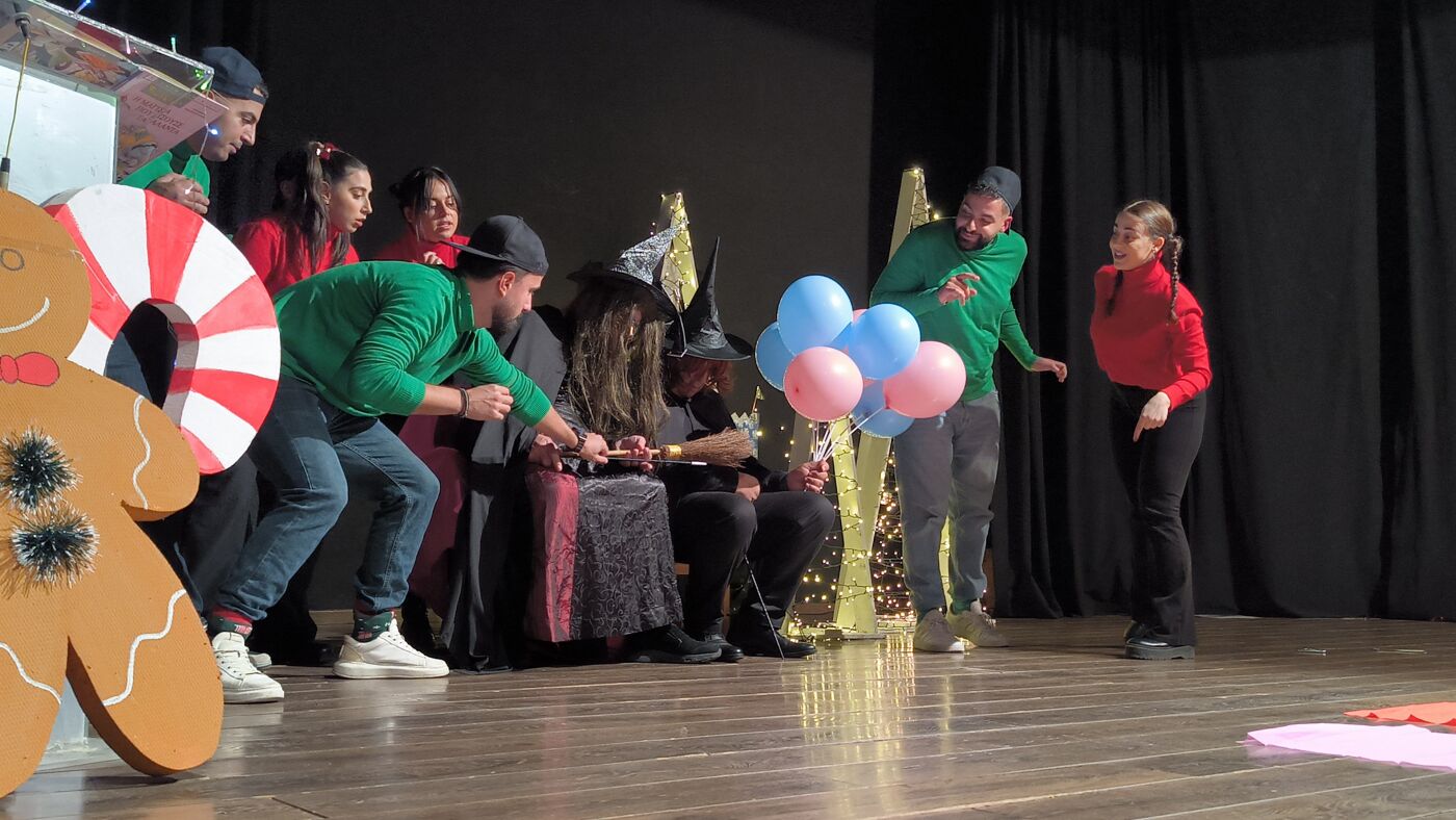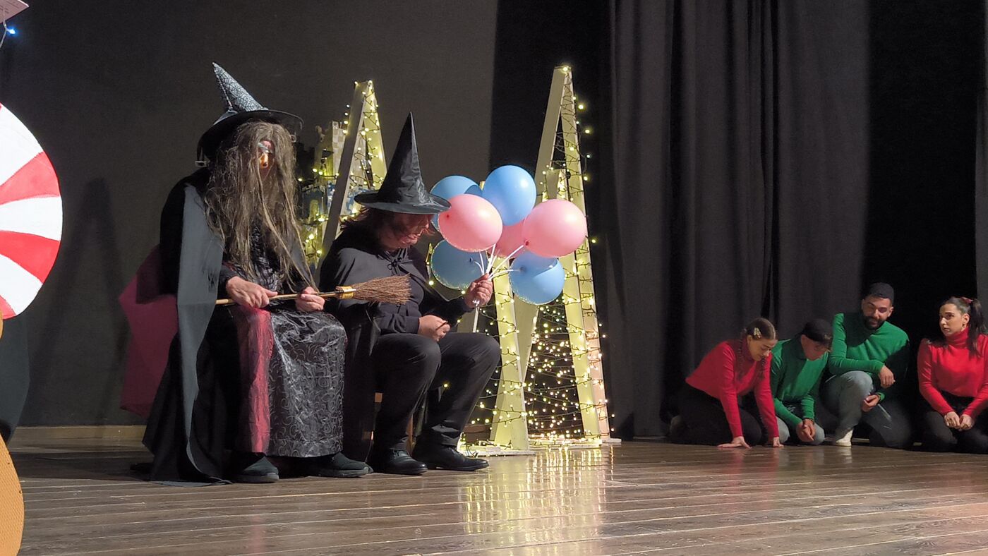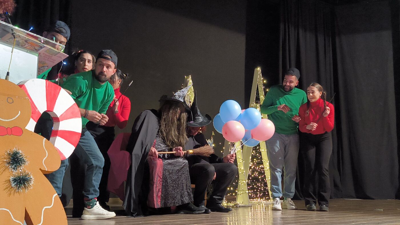 Τα μέλη της Θεατρικής Ομάδας δεν περιορίστηκαν στην απλή αφήγηση, αλλά «ζωντάνεψαν» και έπαιξαν το παραμύθι, παρασύροντας τα παιδιά σε έναν κόσμο όπου οι μελωδίες των Χριστουγέννων νικούν ακόμα και την πιο κακιά μάγισσα.
