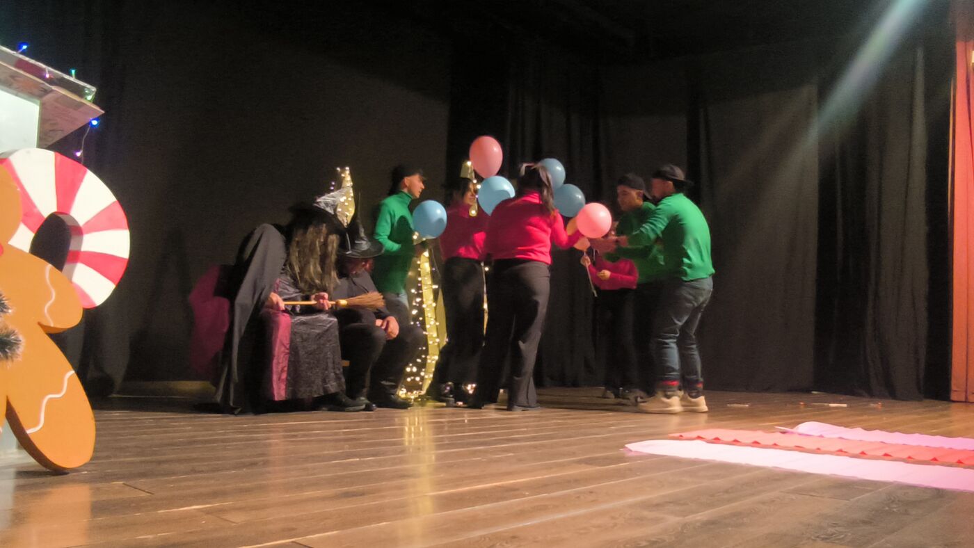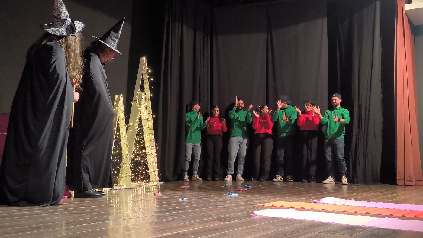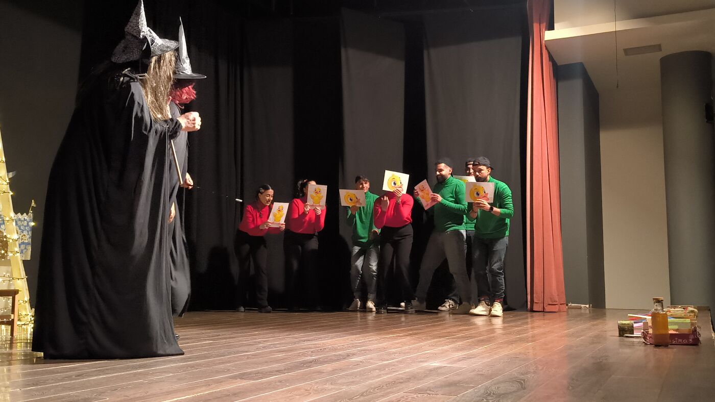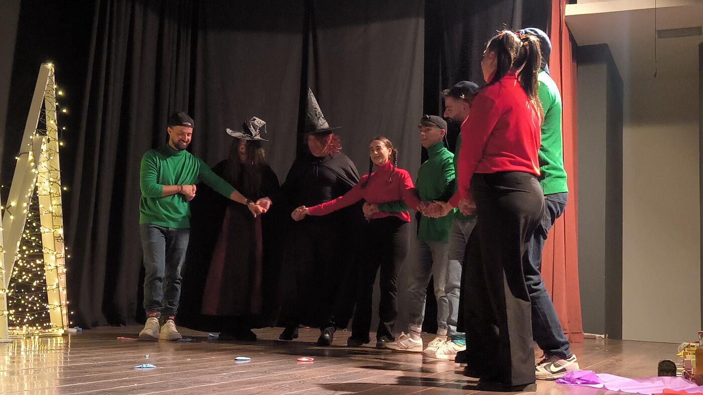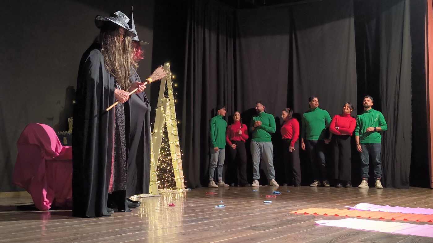 Τα μέλη της Θεατρικής Ομάδας δεν περιορίστηκαν στην απλή αφήγηση, αλλά «ζωντάνεψαν» και έπαιξαν το παραμύθι, παρασύροντας τα παιδιά σε έναν κόσμο όπου οι μελωδίες των Χριστουγέννων νικούν ακόμα και την πιο κακιά μάγισσα.