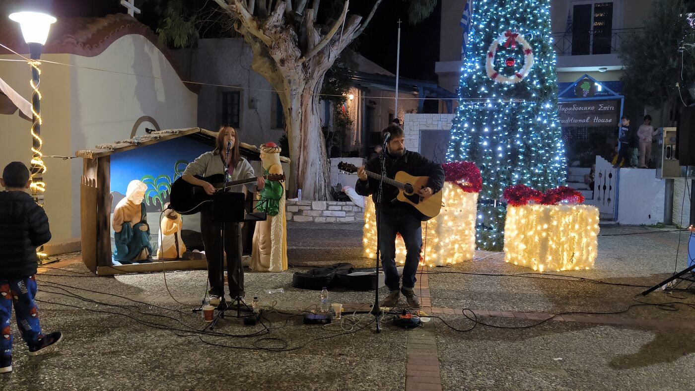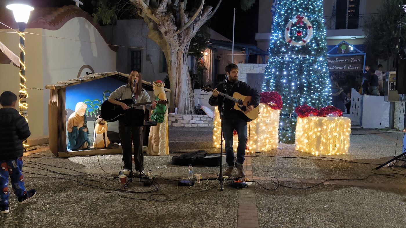 Η επίσημη φωταγώγηση της πλατείας πραγματοποιήθηκε στις 18:00, δίνοντας το σύνθημα για την έναρξη της εορταστικής περιόδου. Η συνέχεια δόθηκε στο Πολιτιστικό με την αφηγηματική παρουσίαση χριστουγεννιάτικου παραμυθιού από τη Θεατρική Ομάδα του Απελλή, ενώ η πρώτη ημέρα ολοκληρώθηκε με μια ατμοσφαιρική μουσική βραδιά από τους εκπαιδευτικούς του Δημοτικού Σχολείου Πυλίου, Σαββίνα Σερέλη και Γιώργο Γιαννή.