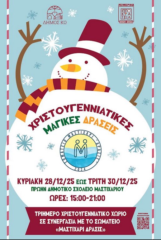 ΧΡΙΣΤΟΥΓΕΝΝΙΑΤΙΚΕΣ ΜΑΓΙΚΕΣ ΔΡΑΣΕΙΣ-ΤΡΙΗΜΕΡΟ ΧΡΙΣΤΟΥΓΕΝΝΙΑΤΙΚΟ ΧΩΡΙΟ σε συνεργασία με το ΣΩΜΑΤΕΙΟ «ΜΑΣΤΙΧΑΡΙ ΔΡΑΣΙΣ»