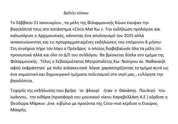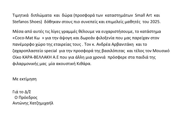 Πολιτισμός - Τέχνες Φιλαρμονική Κώων «Παναγιώτης Τσακανιάς»: Ευχαριστήριο δελτίο τύπου