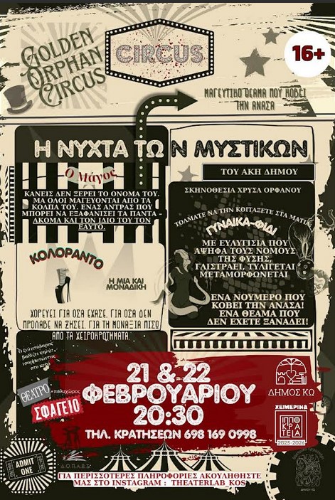 ΘΕΑΤΡΙΚΗ ΠΑΡΑΣΤΑΣΗ «Η ΝΥΧΤΑ ΤΩΝ ΜΥΣΤΙΚΩΝ» από το ΘΕΑΤΡΙΚΟ ΕΡΓΑΣΤΗΡΙ ΔΗΜΟΥ ΚΩ