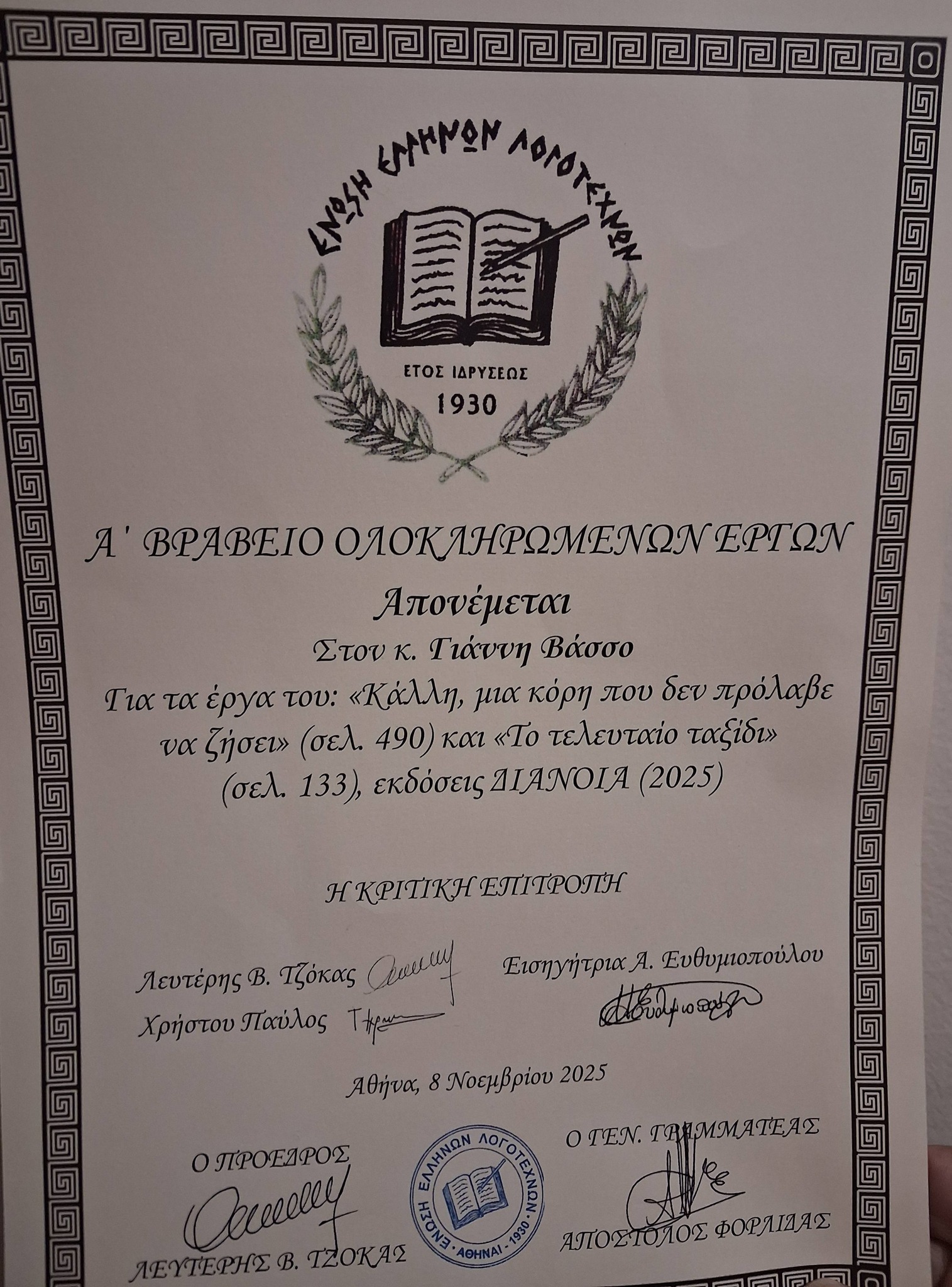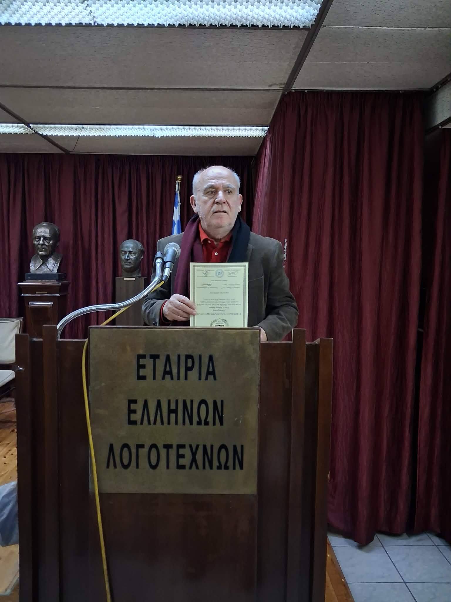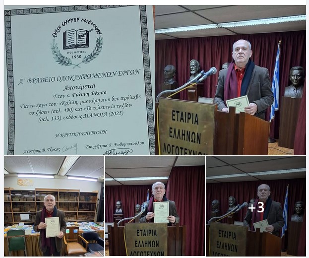 Ευχαριστώ την ΈΝΩΣΗ ΕΛΛΉΝΩΝ ΛΟΓΟΤΕΧΝΩΝ για την βράβευσή μου, με μία υπόσχεση να προχωρήσω γρήγορα και σε νέα έκδοση καινούργιο μου βιβλίο.