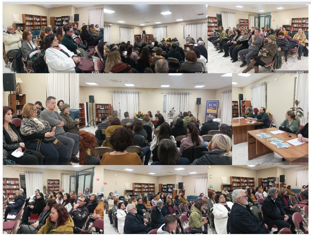 Με τη συγγραφέα συζήτησαν η Γιώτα Κεφαλά, φιλόλογος στο 2ο ΓΕΛ Κω και ο Σωτήρης Παλάσκας Σύμβουλος Εκπαίδευσης Φιλολόγων Δωδεκανήσου. Ποιήματα της συγγραφέως διάβασαν οι: Άντζελα Άνθη, Μαρία Χαραμαντά και η Σοφία Παπαχρήστου.