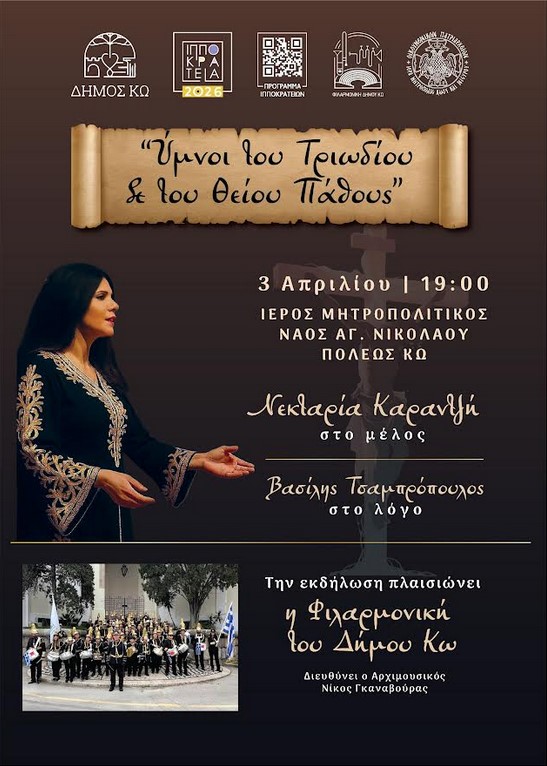 Διοργάνωση: Τμήμα Πολιτισμού Δήμου Κω Ιερά Μητρόπολις Κώου και Νισύρου & Φιλαρμονική Δήμου Κω