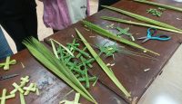 Οι δημιουργίες περιελάμβαναν βάψιμο αυγών, κατασκευή πασχαλινών λαμπάδων και σταυρουδάκια από βάγια.
