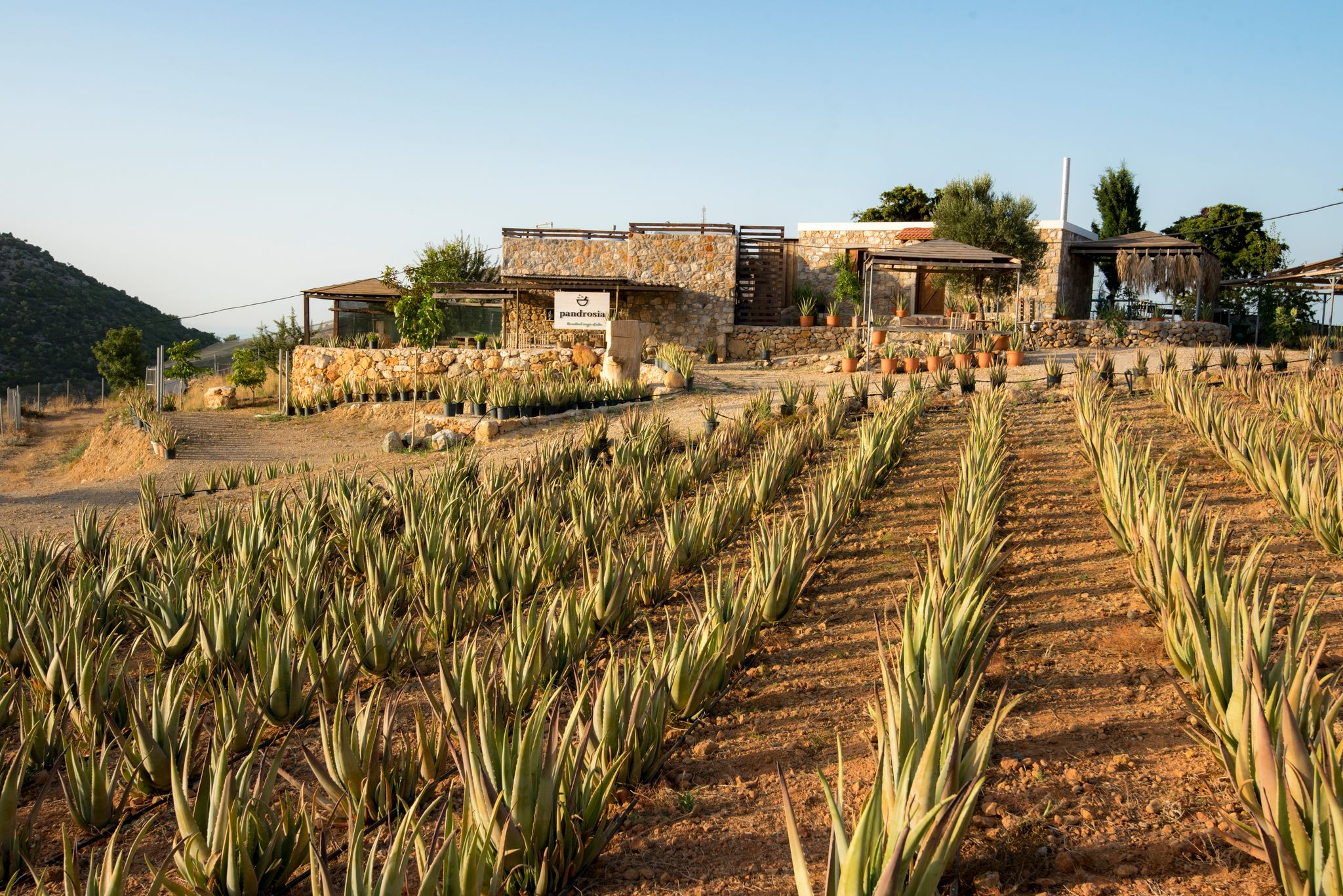 Στο αμέσως προηγούμενο στάδιο, το κτήμα ήταν φάρμα αλόης –το έλεγαν και «Aloe Farms», μάλιστα. Αρχικά, ο Παύλος Δρόσος προσπάθησε να διαθέσει την πρώτη ύλη με το όνομά του, για την παραγωγή της οποίας έκαναν πολύ καλή δουλειά: δεν χρησιμοποιούσαν π.χ. χημικά και φυτοφάρμακα. Όμως η ζήτηση από τα εργοστάσια παραγωγής αυξάνει πάντα την τιμή της πρώτης ύλης. Επίσης, τέτοιες μονάδες παραγωγής δεν ενδιαφέρονταν και τόσο για την ποιότητα της πρώτης ύλης που παρήγαγε το κτήμα τους. Έτσι, επειδή δεν υπήρχε ικανοποιητική απορρόφηση της πρώτης τους ύλης, αποφάσισαν να πάρουν την κατάσταση στα χέρια τους και να δημιουργήσουν δική τους μονάδα επεξεργασίας αλόης.