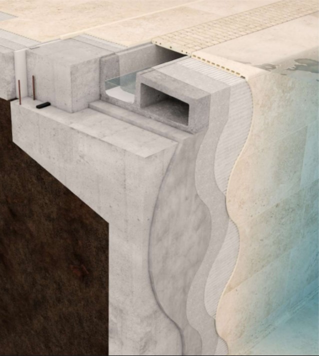Τεχνική τομή πισίνας – δείχνει κανάλι υπερχείλισης.