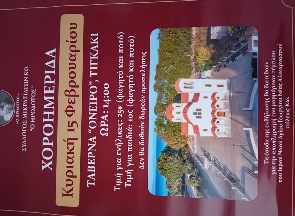 Ατζέντα ΕκδηλώσεωνΕιδήσειςΣφηνάκια Χοροημερίδα Συλλόγου Μικρασιατών Κω «ο Ηρόδοτος» στο Όνειρο Από aegeanews - 6 Φεβ 2026 0 32 Κοινοποίηση στο Facebook Μοιραστείτε στο X