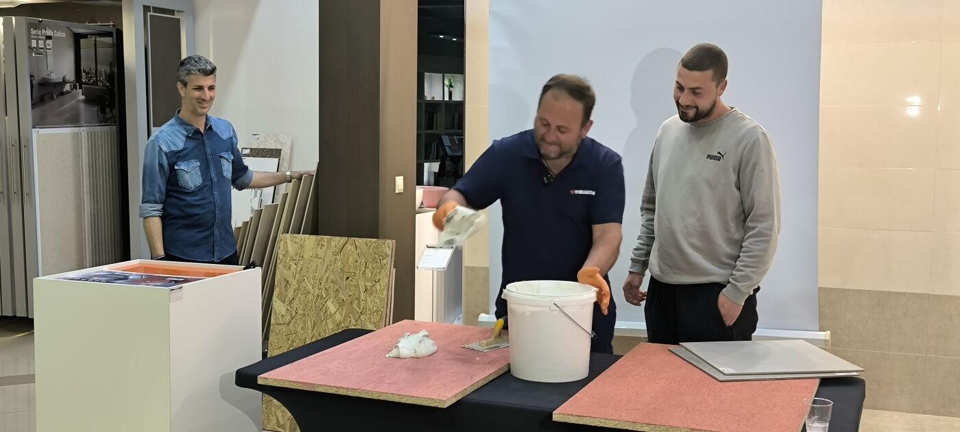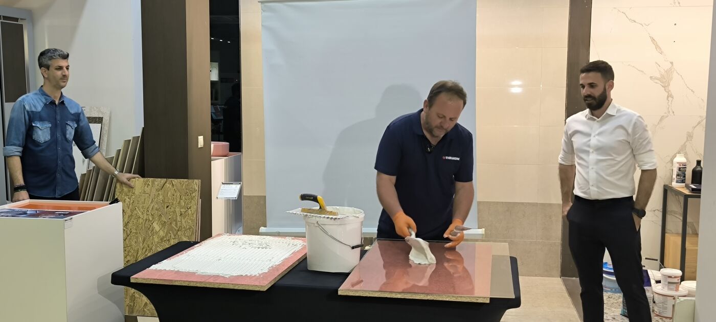 Σε συνεργασία με την κορυφαία ελληνική εταιρεία Thrakon, πραγματοποιήθηκε μια διαδραστική παρουσίαση που απευθυνόταν αποκλειστικά στον τεχνικό κόσμο του νησιού. Τα εξειδικευμένα στελέχη της Thrakon ανέλυσαν τη φιλοσοφία πίσω από τα νέα, καινοτόμα υλικά, δίνοντας έμφαση στις λύσεις που προσφέρουν στην καθημερινή πράξη. Το σημαντικότερο σκέλος της εκδήλωσης ήταν η δυνατότητα των τεχνιτών να δοκιμάσουν τα υλικά σε πραγματικό χρόνο, διαπιστώνοντας πώς η νέα γενιά προϊόντων διευκολύνει την τοποθέτηση, εξασφαλίζει μεγαλύτερη αντοχή και αναβαθμίζει τις συνθήκες εργασίας τους.