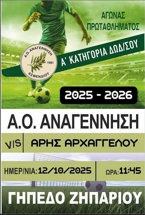 ΕιδήσειςΑθλητικάΑτζέντα Εκδηλώσεων ΑΟ Αναγέννηση: Κάλεσμα στον αγώνα της Κυριακής με τον Άρη Αρχαγγέλου Από aegeanews - 9 Οκτ 2025 0 14 Κοινοποίηση στο Facebook Μοιραστείτε στο X Για την 3η αγωνιστική της Α’ Κατηγορίας Δωδεκανήσου, η ομάδα μας υποδέχεται την Κυριακή 12 Οκτωβρίου στις 11:45 τον Άρη Αρχαγγέλου. Καλούμε το φίλαθλο κοινό να δώσει δυναμικό παρών και όλοι μαζί να στηρίξουμε τις προσπάθειες των παικτών της ομάδας μας.
