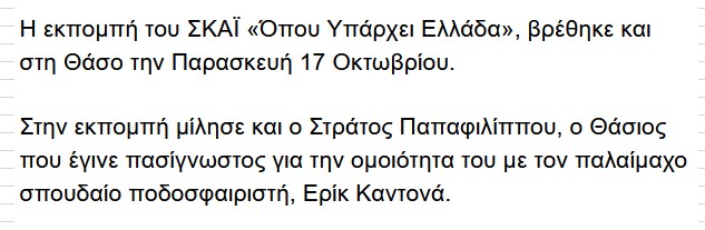 ΕιδήσειςΑθλητικά Ο Καντονά της Θάσου: Μια ομοιότητα που έγραψε ιστορία (ΒΙΝΤΕΟ) Από aegeanews - 17 Οκτ 2025 0 27 Κοινοποίηση στο Facebook Μοιραστείτε στο X