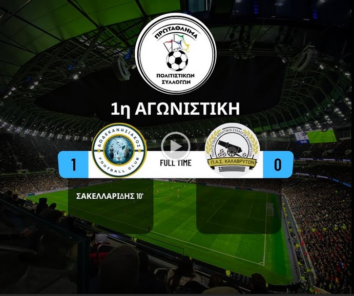 Στο πρώτο χρονικά παιχνίδι της 1ης αγωνιστικής ο Δωδεκανησιακός νίκησε 1 -0 την ομάδα των Πολιτιστικών Αθλητικών Συλλόγων Καλαβρύτων.Ένας όμορφος αγώνας με δυνατές μονομαχίες, αλλά λίγες φάσεις, κυρίως από τους Δωδεκανήσιους. Μόλις στο 10′ λεπτό σε έναν καλό συνδυασμό των Μαριάκη- Χανιώτη – Κετσέ – Σακελλαρίδη ο τελευταίος πλάσαρε προ μπροστά από τον τερματοφύλακα και έδωσε τη νίκη στους νησιώτες.