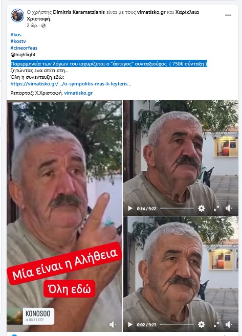 Δημόσιας Κρίσης Δ. Καραματζιάνης: Παρερμηνεία των λόγων του ισχυρίζεται ο «άστεγος» συνταξιούχος (750€...