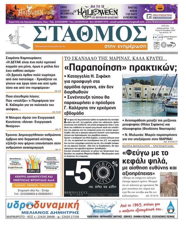 ΕιδήσειςΕν ΔωδεκανήσωΤα εν δήμω Το πρωτοσέλιδο της εφημερίδας ΣΤΑΘΜΟΣ Από aegeanews - 8 Οκτ 2025 0 31 Κοινοποίηση στο Facebook Μοιραστείτε στο X