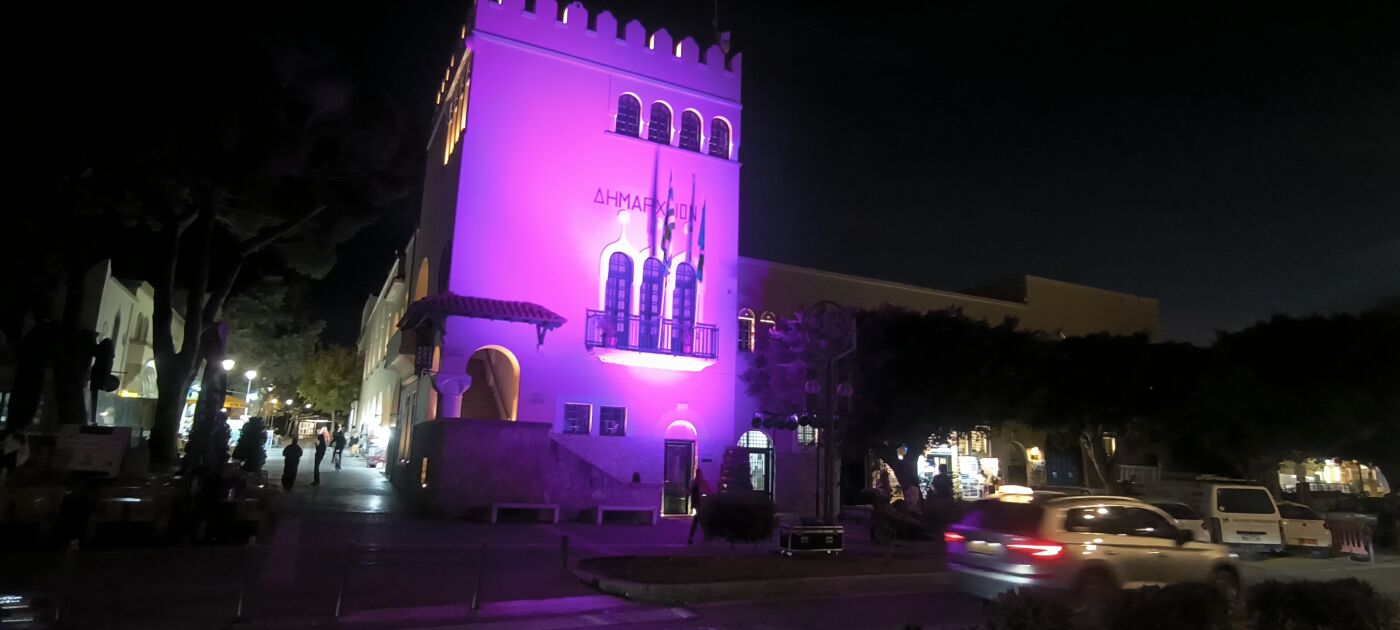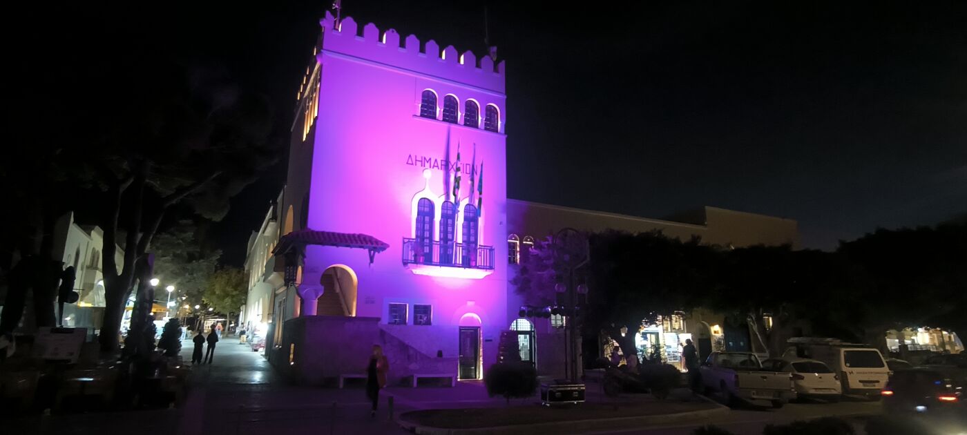 Σε μια συμβολική κίνηση ευαισθητοποίησης, ο Δήμος της Κω φωταγώγησε το ιστορικό και εμβληματικό κτίριο του Δημαρχείου με ροζ χρώμα την Παρασκευή 24 Οκτωβρίου.