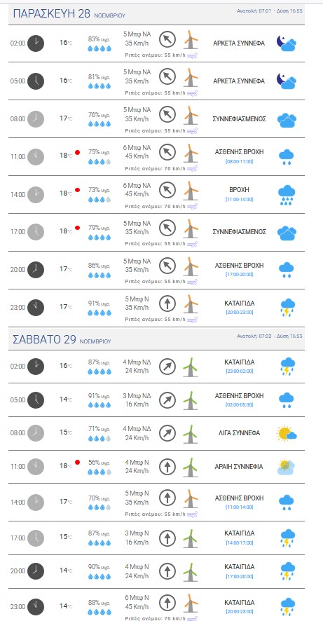 β. Την Παρασκευή (28-11-25) εκτός των ανωτέρω περιοχών, κατά τόπους ισχυρά φαινόμενα προβλέπονται και στα