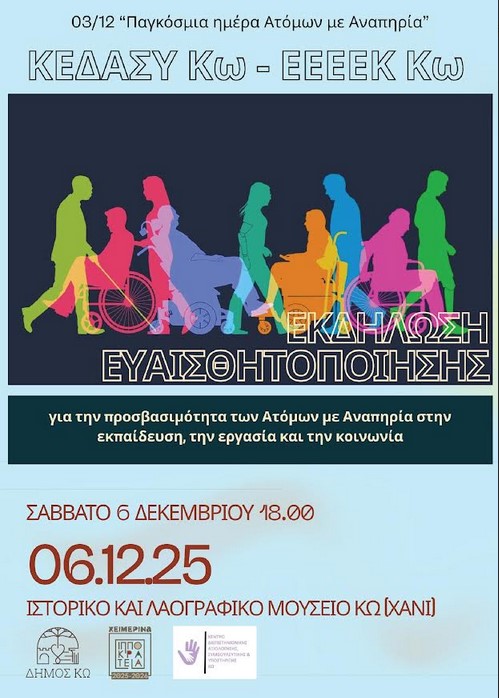 ΕΚΔΗΛΩΣΗ-ΟΜΙΛΙΑ ΜΕ ΑΦΟΡΜΗ ΤΗΝ ΠΑΓΚΟΣΜΙΑ ΗΜΕΡΑ ΑΤΟΜΩΝ ΜΕ ΑΝΑΠΗΡΙΑ από το ΚΕ.Δ.Α.Σ.Υ. ΚΩ, το Ε.Ε.Ε.Ε.Κ. ΚΩ και τον ΣΥΛΛΟΓΟ ΓΟΝΕΩΝ του Ε.Ε.Ε.Ε.Κ. ΚΩ