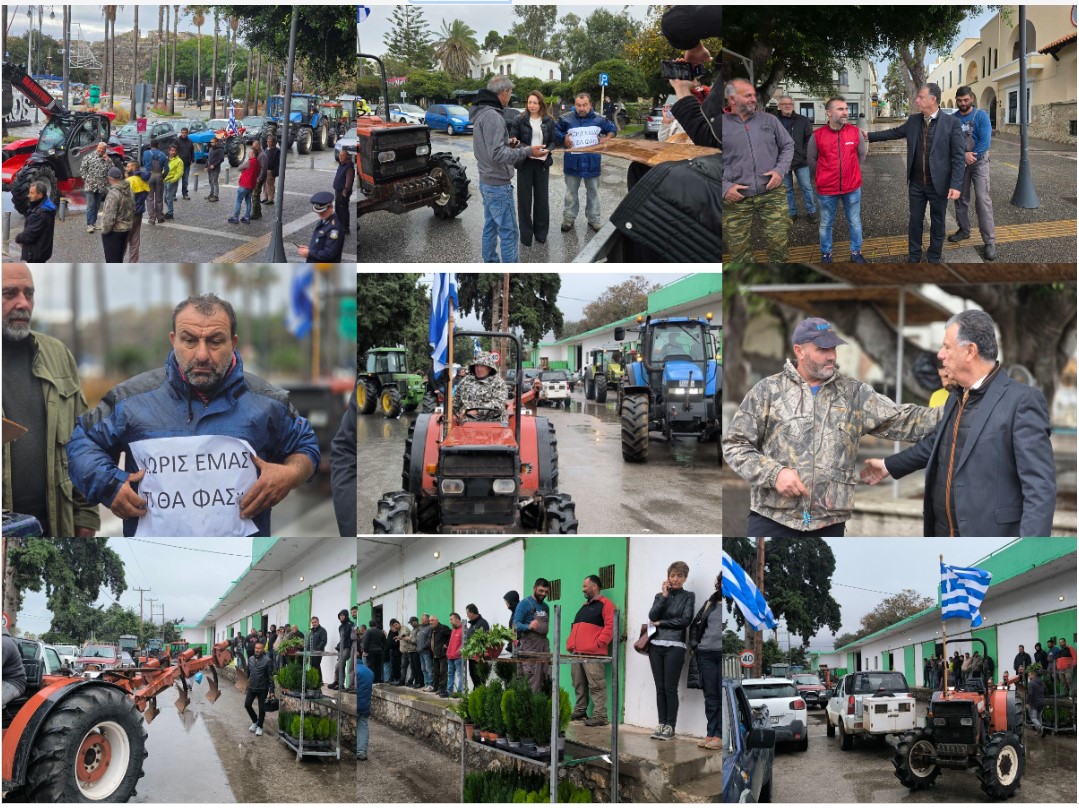 Υπό βροχή η κινητοποίηση και πορεία των φορέων του Πρωτογενή τομέα της Κω στους δρόμους της πόλης