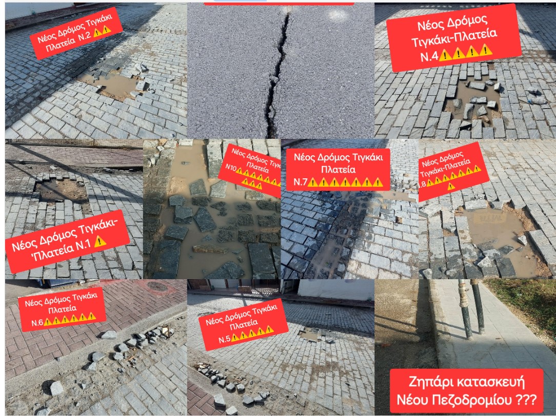 Δυστυχώς στο ίδιο έργο θεατές , μετά το πέρας κάθε τουριστικής σεζόν ο δρόμος βρίσκεται σε διάλυση , ο δήμος επισκευάζει και ξανά επισκευάζει κάθε χειμώνα ένα έργο που παρέλαβε από έναν εργολάβο και μάλλον το χρυσοπληρώνουμε ξανά και ξανά , οι φωτογραφίες που σας παραθέτω δεν είναι από τον πόλεμο στην Ουκρανία η την Λωρίδα της Γάζας αλλά από το αγαπημένο μας Τιγκάκι 7/12/25.