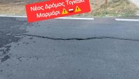 Έχουν περάσει λίγοι μήνες από την παράδοση του έργου ασφαλτόστρωσης Τιγκάκι – Μαρμάρι και πριν ακόμα χειμωνιάσει και χωρίς να έχουμε κίνηση βαρέων οχημάτων αυτήν την περίοδο ο δρόμος σε πολλά σημεία έχει καθίζηση που ταυτόχρονα δημιουργούν σαμαράκια επικίνδυνα για οδήγηση και αποκολλήσεις ασφάλτου . Ούτε και εδώ όπως φαίνεται και στις εικόνες δεν πρόβλεψαν ένα τοιχίο αντιστήριξης και άφησαν τα χώματα πρανές μόνα τους με αποτέλεσμα με την πρώτη βροχή να υποχωρούν !!.