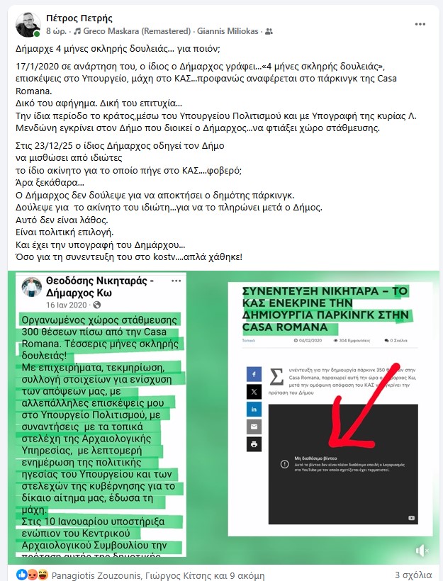 ΕιδήσειςΕν ΔωδεκανήσωΤα εν δήμω Πέτρος Πετρής: Δήμαρχε 4 μήνες σκληρής δουλειάς… για ποιόν; Από aegeanews - 30 Δεκ 2025 0 41 Κοινοποίηση στο Facebook Μοιραστείτε στο X