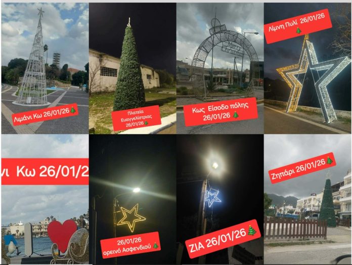 Δυστυχώς ακόμα και σήμερα 27/01/26 ο φτωχός χριστουγεννιάτικος διάκοσμος σε όλο το νησί είναι ακόμα φωτεινός !!