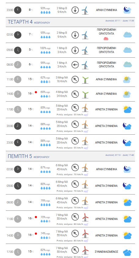 στα τακτικά και τα έκτακτα δελτία καιρού, στην ιστοσελίδα της ΕΜΥ