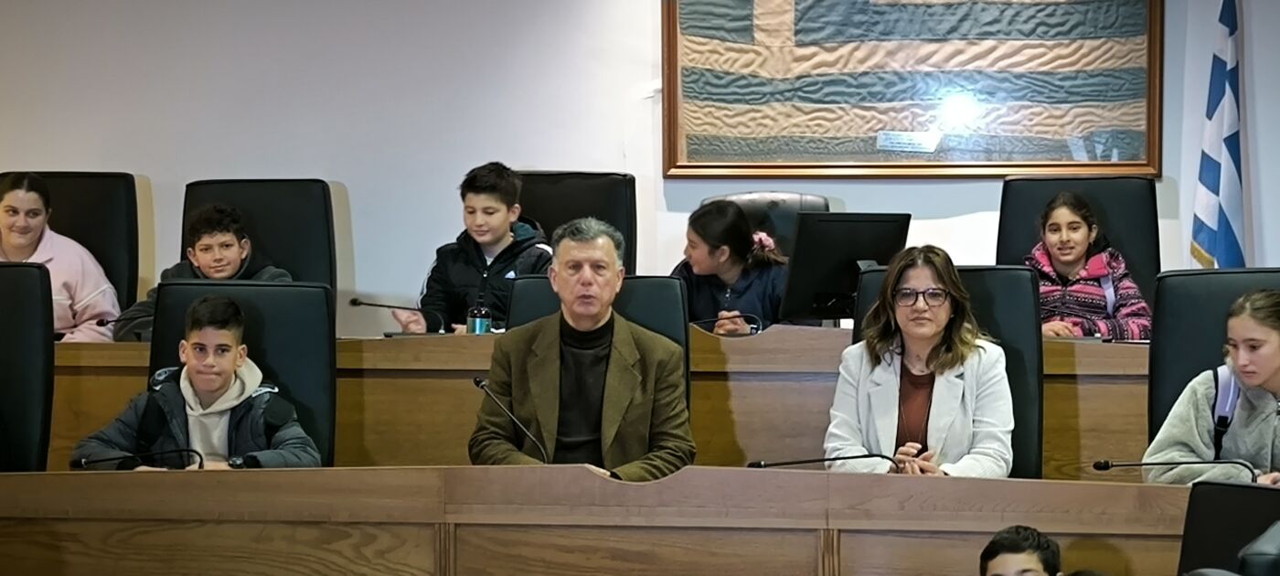 Η περιήγηση ολοκληρώθηκε στην εμβληματική αίθουσα του Δημοτικού Συμβουλίου. Καθισμένοι στα έδρανα των συμβούλων, οι μαθητές άκουσαν τον Δήμαρχο να αναλύει τον ρόλο του, τη σημασία του Δημοτικού Συμβουλίου και τον τρόπο με τον οποίο λαμβάνονται οι αποφάσεις που επηρεάζουν το μέλλον της Κω.