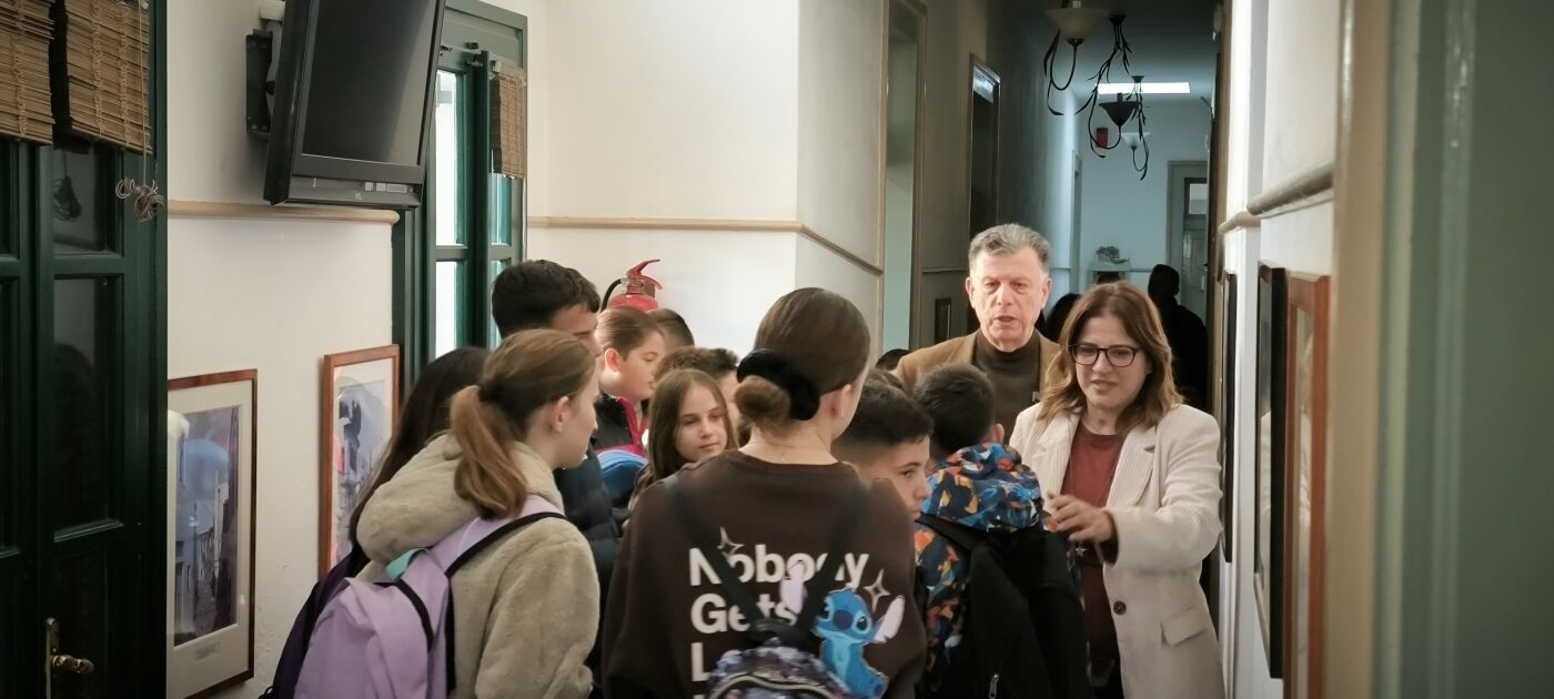 Η επίσκεψη ξεκίνησε από το Γραφείο του Δημάρχου, όπου ο κ. Νικηταράς καλωσόρισε τα παιδιά σε ένα πολύ ζεστό κλίμα. Στη συνέχεια, ο ίδιος ανέλαβε ρόλο «ξεναγού», συνοδεύοντας τους μαθητές στις διάφορες υπηρεσίες του Δήμου. Εκεί, τα παιδιά είχαν την ευκαιρία να δουν από κοντά πώς εργάζονται οι υπάλληλοι και πώς λειτουργεί η καθημερινή «μηχανή» που εξυπηρετεί τους πολίτες του νησιού.