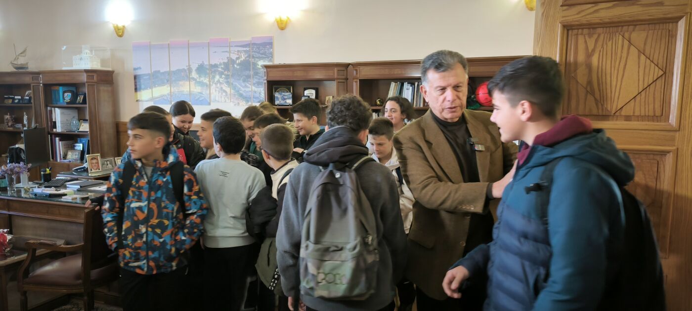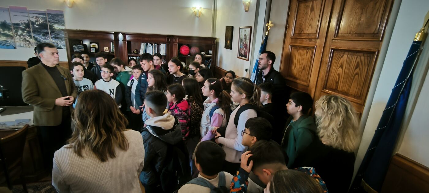 Μια ξεχωριστή και γεμάτη ζωντάνια επίσκεψη δέχθηκε σήμερα το πρωί ο Δήμαρχος Κω, Θεοδόσης Νικηταράς. Μαθητές και εκπαιδευτικοί του Δημοτικού Σχολείου Αντιμάχειας βρέθηκαν στο Δημαρχιακό Μέγαρο, σε μια δράση που συνδύασε την εκπαίδευση με τη γνωριμία με την τοπική αυτοδιοίκηση.