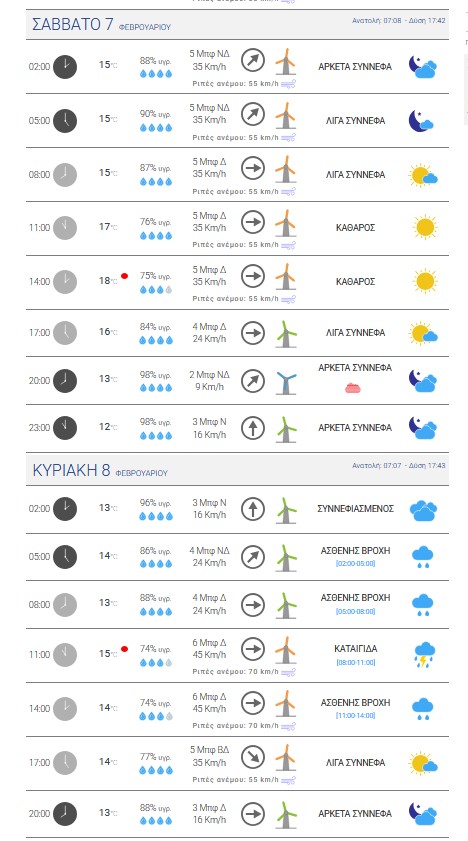 άνεμοι ως & 6/2/2026, Eπιφυλακή Yπηρεσιών, σύμφωνα και με τα έκτακτα