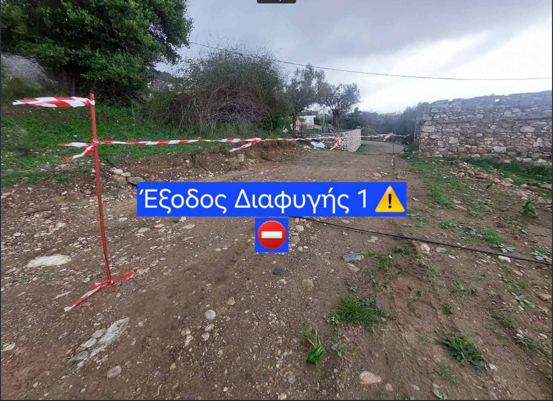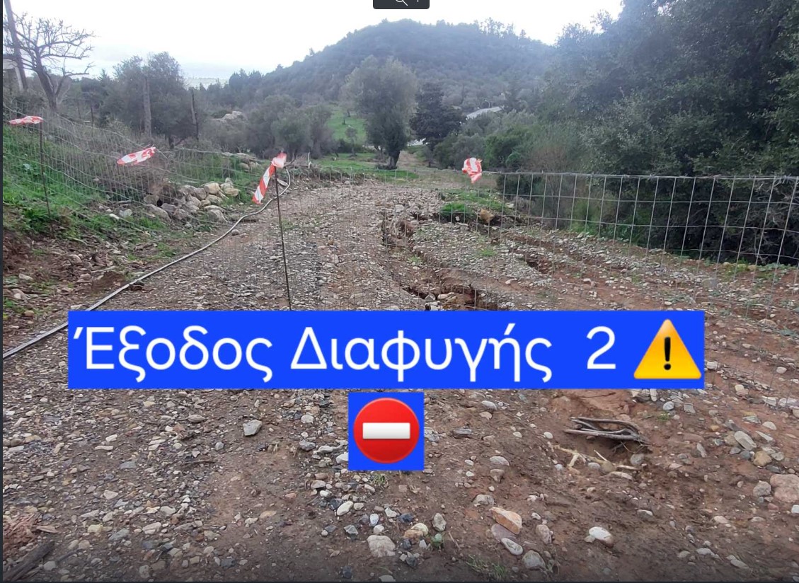 Έχει γίνει καταπάτηση και η δυο έξοδοι διαφυγής περνούν μέσα από χείμαρρο και ιδιωτικές περιούσιες ;;;