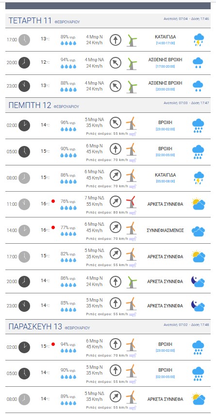 της Πέμπτης 12-02-2026 έως και τις πρώτες πρωινές ώρες της Παρασκευής