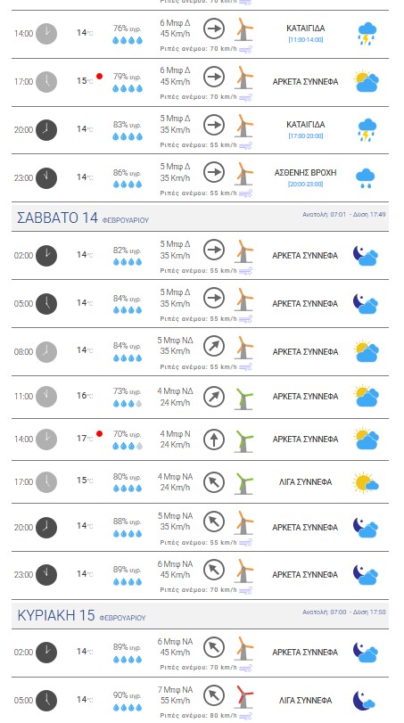 – στη δυτική Ελλάδα το βράδυ της Πέμπτης (νότιοι νοτιοδυτικοί άνεμοι) και τις πρωινές ώρες της Παρασκευής