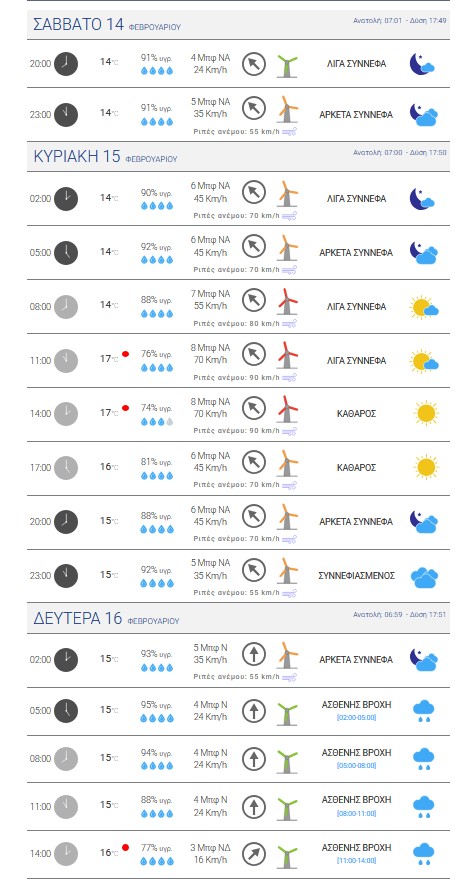 α. στην περιοχή Κέρκυρας – Παξών από το βράδυ σήμερα Σάββατο 14-02-2026 έως και το πρωί της Κυριακής 15-02-