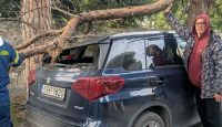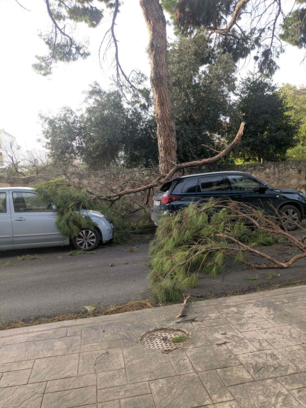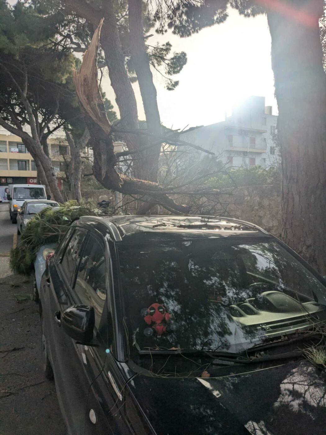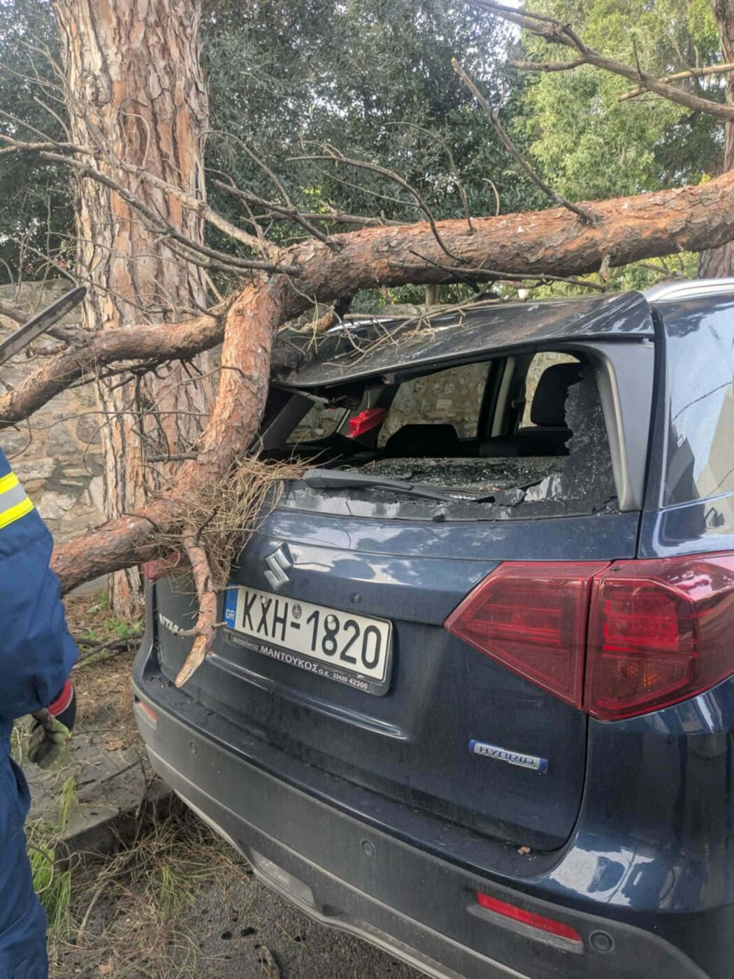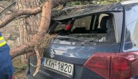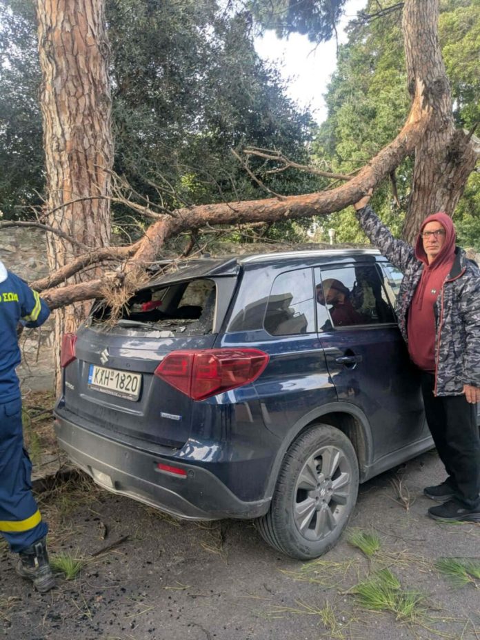 Το κλαδί από το δέντρο κατέληξε πάνω στην οροφή ενός ΙΧ αυτοκινήτου. Ευτυχώς, την ώρα της πτώσης δεν περνούσε κάποιος πεζός και το όχημα ήταν άδειο, αποφεύγοντας έτσι τα χειρότερα.»
