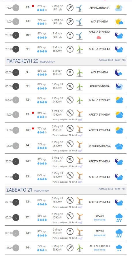 2. Πολύ ισχυροί έως θυελλώδεις άνεμοι θα πνέουν α. στο Ιόνιο και τα παράκτια της δυτικής ηπειρωτικής χώρας (Ηπείρου, δυτικής Στερεάς και δυτικής Πελοποννήσου) την Τρίτη μέχρι το μεσημέρι δυτικοί νοτιοδυτικοί 7 με 8 μποφόρ και από το απόγευμα – βράδυ έως τις πρώτες ώρες της Τετάρτης 18-02-2026 βορειοδυτικοί 9 με 10 μποφόρ β. στην Κρήτη, τις Κυκλάδες και τη νοτιοανατολική Πελοπόννησο την Τρίτη από τις πρωινές ώρες νοτιοδυτικοί 7 με 8 μποφόρ και από το βράδυ έως και τις πρωινές ώρες της Τετάρτης 18-02-2026 δυτικοί 9 μποφόρ.