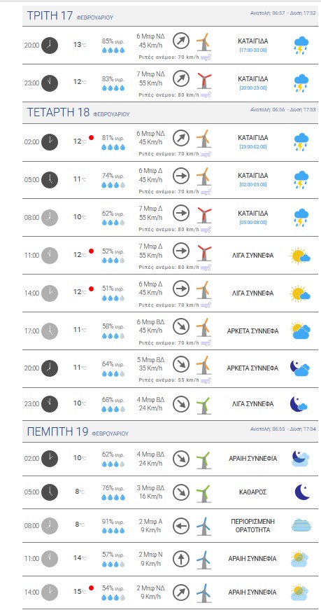 Νέα επιδείνωση θα παρουσιάσει την Τρίτη 17-02-2026 ο καιρός στη χώρα μας με κατά τόπους ισχυρές βροχές, καταιγίδες, θυελλώδεις ανέμους και πιθανόν χαλαζοπτώσεις. Αναλυτικά :