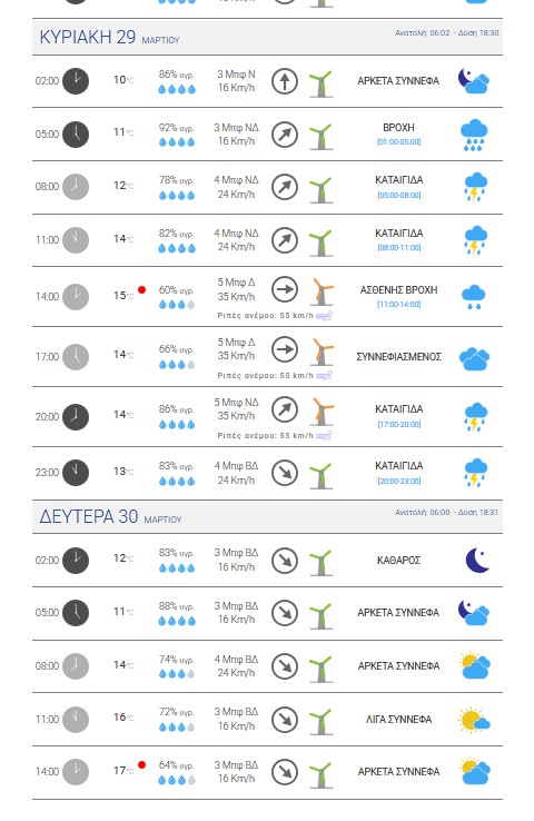 στα τακτικά και τα έκτακτα δελτία καιρού, στην ιστοσελίδατης ΕΜΥ