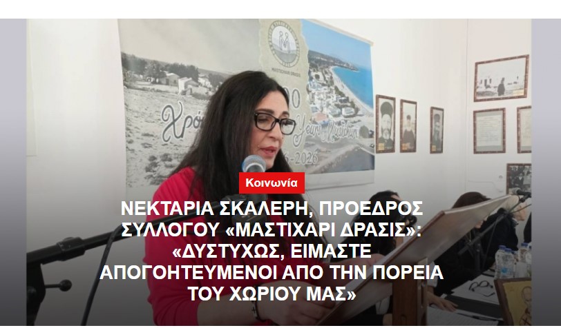«Ζούμε σε έναν τόπο όλοι μαζί, ας συνεισφέρει ο καθένας με τον τρόπο που μπορεί. Εγκαταστάσεις όπως ΕΚΟΤΑ και ΔΕΗ, υποβαθμίζουν το περιβάλλον του Μαστιχαρίου. Θα σας έλεγα, ακόμα και να μην είναι υποχρεωμένοι να συμβάλλουν, θα έπρεπε να το κάνουν»