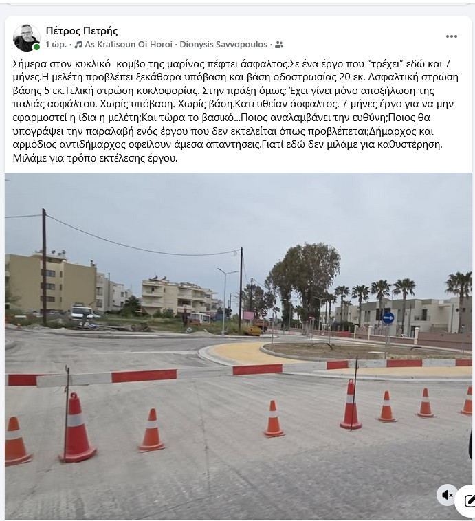 Δημόσιας Κρίσης Πέτρος Πετρής: Ρίχνουν άσφαλτο στον κόμβο της μαρίνας χωρίς υπόβαση & βάση...