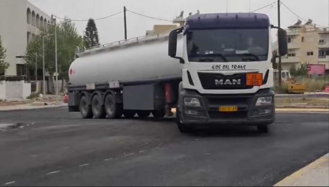 Πάμε και στην πραγματικότητα που είναι αμείλικτη. Η νταλίκα όπως βλέπετε στην φωτογραφία πατάει πάνω στα σημάδια διαγράμμισης οριοθέτησης των ρευμάτων κυκλοφορίας και έχει μπει και καταλαμβάνει το μισό αντίθετο ρεύμα κυκλοφορίας. Αν εκεί έχει στο στοπ 4 αυτοκίνητα την ώρα αιχμής που συνήθως είναι όταν σχολάνε οι υπάλληλοι των ξενοδοχείων ποιος θα κάνει στην άκρη για να μην συγκρουστούν με την νταλίκα???