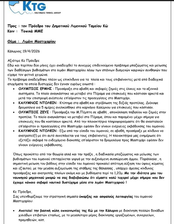 Δημόσιας Κρίσης Βασίλειος Ψαρομπάς: Το λιμάνι Μαστιχαρίου βρίσκεται σε κατάσταση έκτακτης ανάγκης! Επιστολή προς...