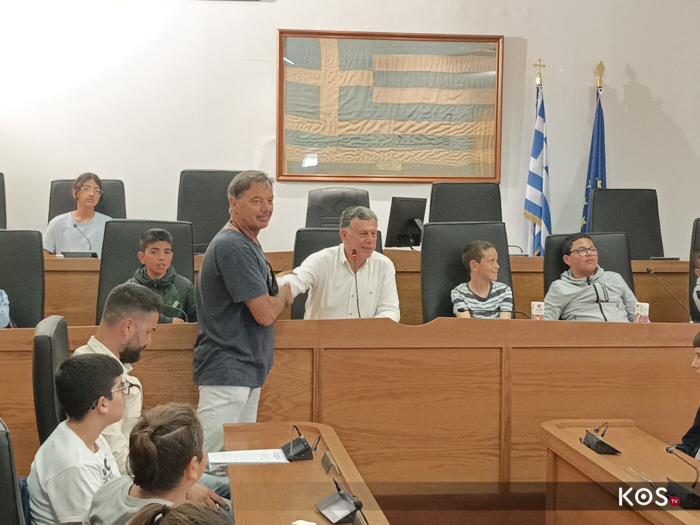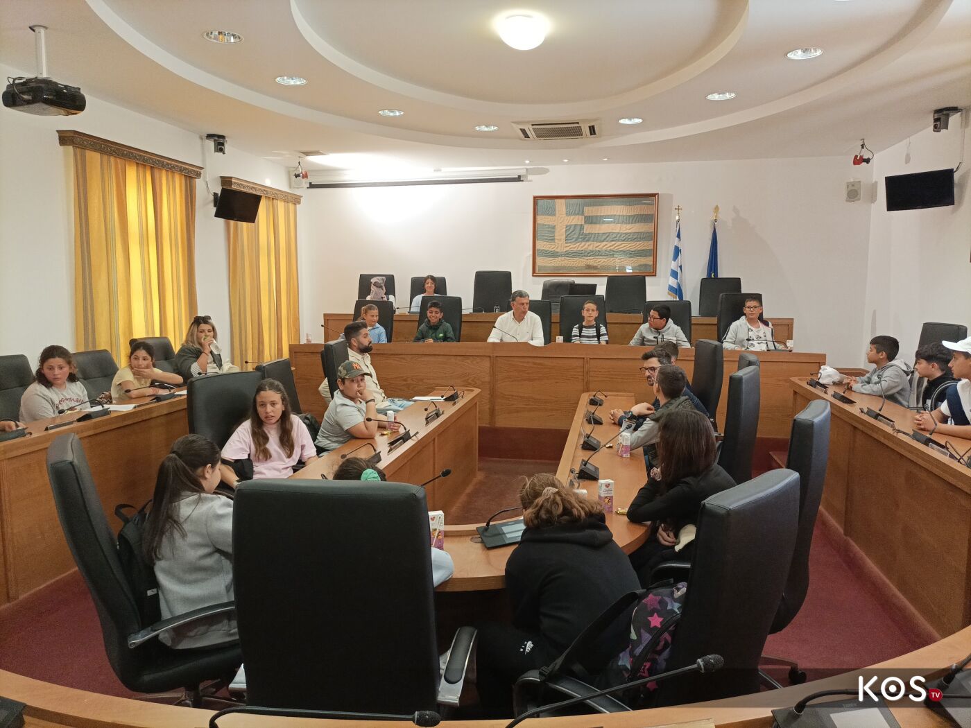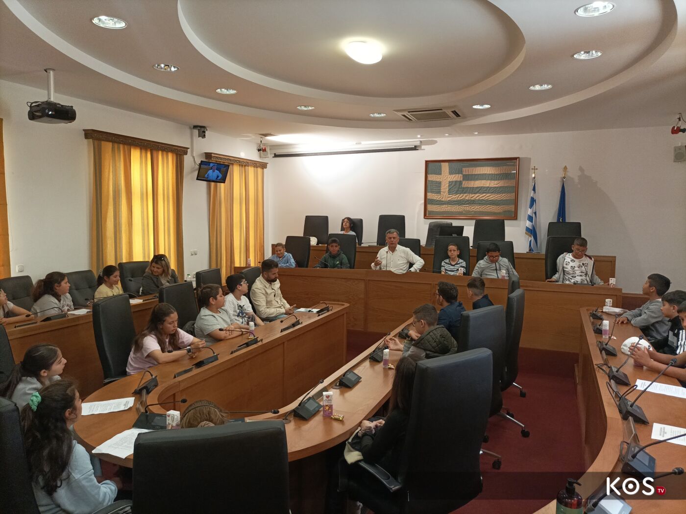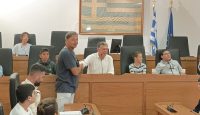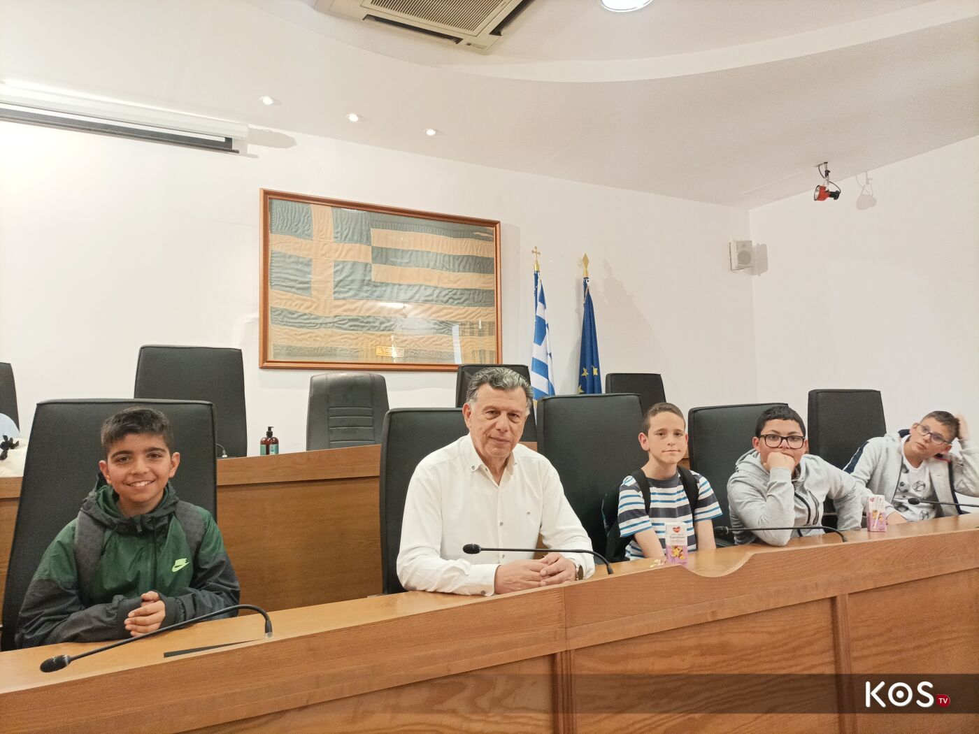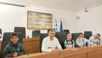 Οι μαθητές έθεσαν ερωτήματα στον δήμαρχο του νησιού στην αίθουσα του Δ.Σ. τα οποία απαντήθηκαν με χαρά αλλά και με χιούμορ από τον οικοδεσπότη.